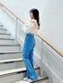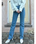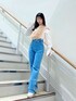 オフショルブラウスとストレートパンツのスタイルアップコーデに、差し色でオレンジのビスチェにもなるバッグを合わせました✨春のカジュアルコーデです🍊