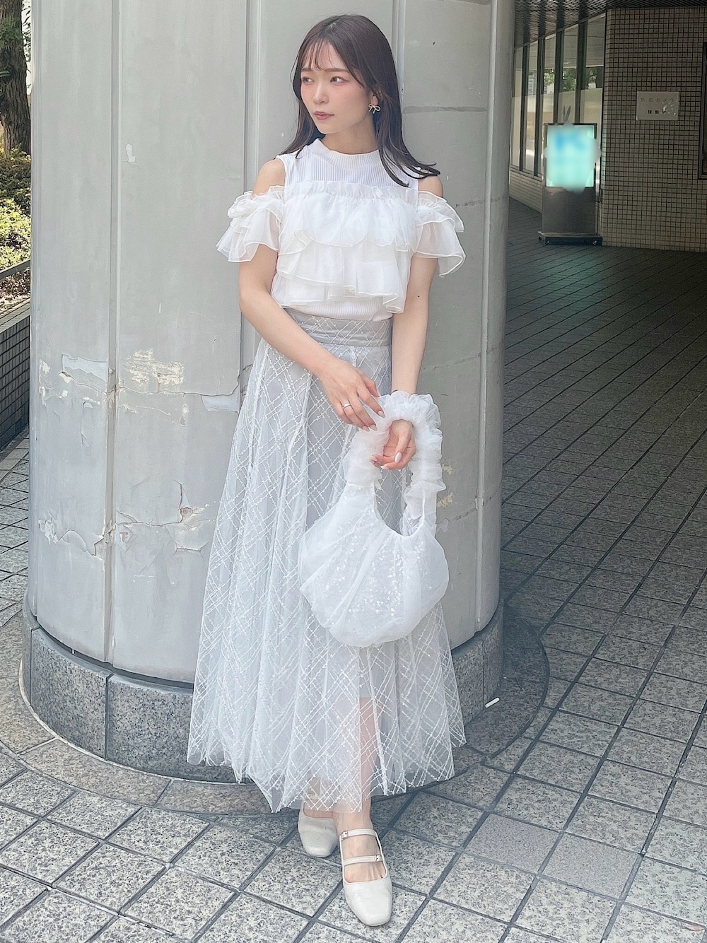 フリル×キラキラのトレンドと女性らしさ満点な夏の涼しげフェミニンコーデです🧊♡