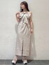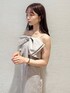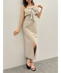 大きなリボンが目を引くトレンド感たっぷりワンピース🎀 シルエットはIラインなので甘すぎず大人っぽく見えるデザイン♡ スリットが入っているので動きやすいです。 中にインナーを合わせて着回ししても可愛いですが、チューブトップと合わせて1枚で着てみました🎶