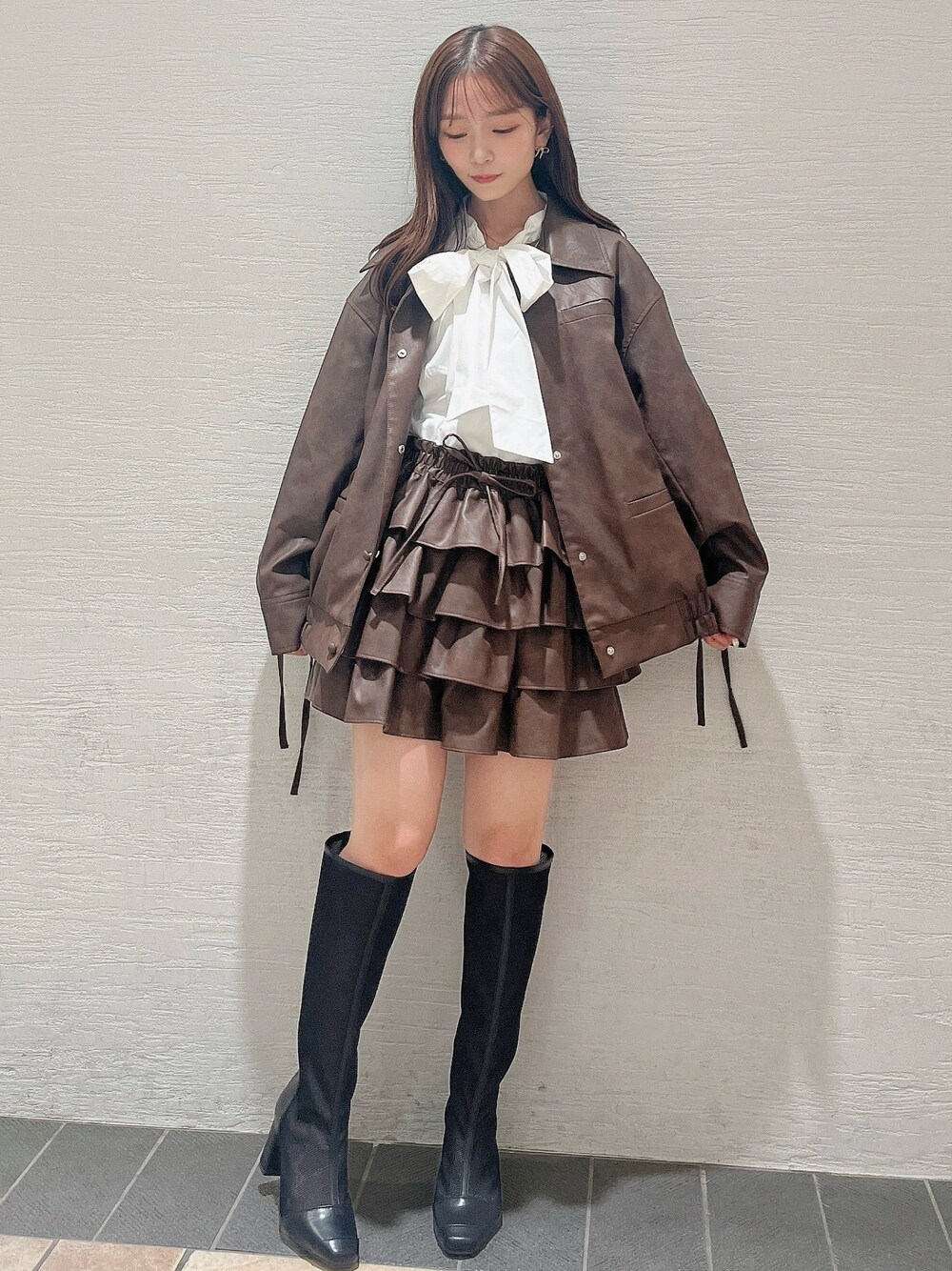 秋に着たいフェイクレザーのブラウンセットアップ🍁 他には無いデザインで目を惹くコーデです!