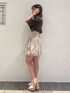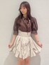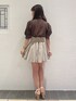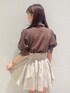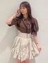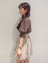 パフスリーブのシャツとハイウエストのバルーンスカートでガーリーにまとめました! カラーが甘すぎないブラウンとベージュなので、大人っぽガーリーコーデに🎶