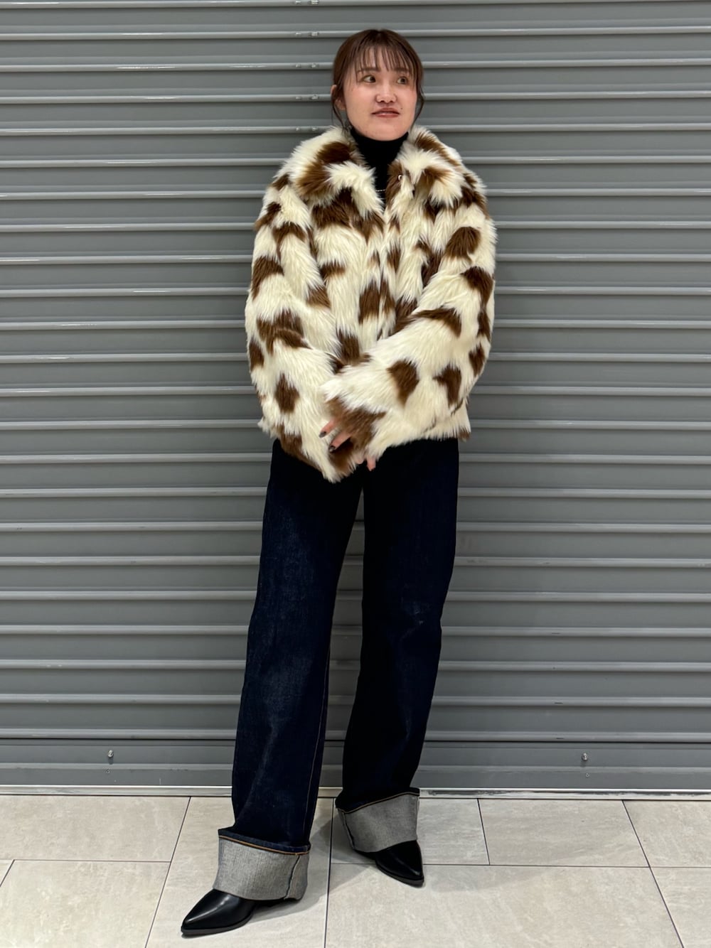 【OUTER】 冬になると着たくなる起毛感が高見えするファーコート❤️ 牛柄のようなデザインがカジュアルにも着て頂けます!! 腕周りもゆったりなので着込んで頂きやすいところも🙆🏼♀️✨ 【TOPS】 毎年大人気ニット!! リアルバイアイテムです🥰 家庭で洗濯していただけるところが嬉しいポイント✨✨ 何色持っていても間違いなしのアイテムです🫣🤍 【DENIM】 ウエストのリメイクデザインとロールアップが履くだけがお洒落見えするデニム♡ 158㎝で24inchを着用しています!! 身長に合わせてロールアップの幅もアレンジして頂けます😌✨