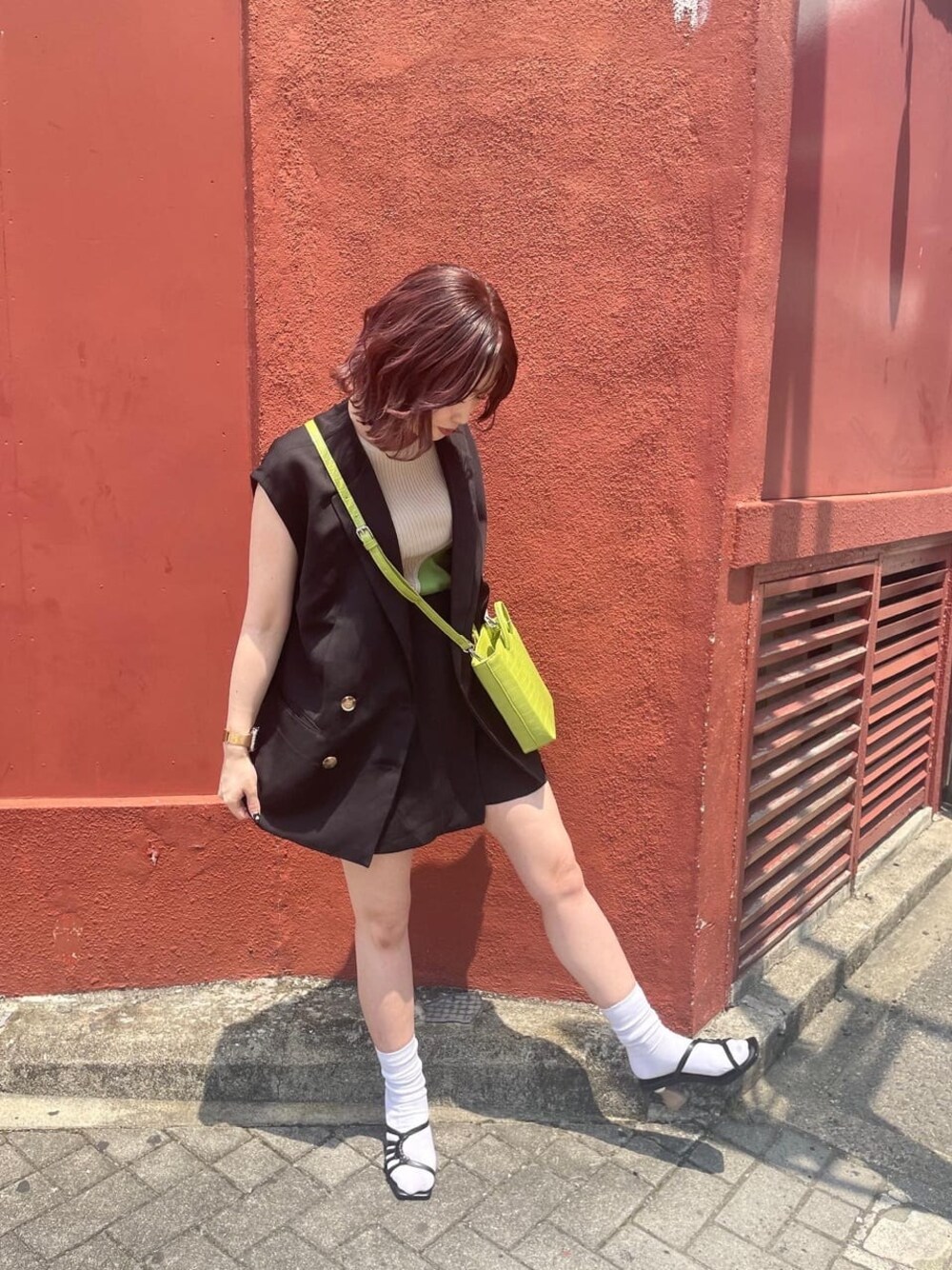 飯嶋菜奈(MURUA)のベスト「ドビークロスルーズベスト【セットアップ着用可能】」を使ったコーディネート