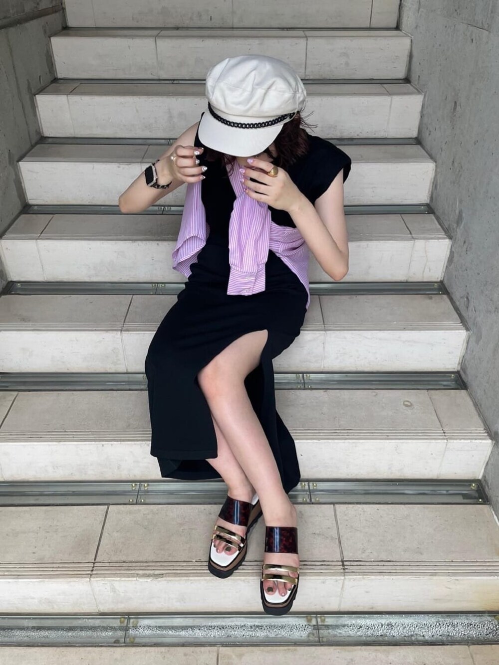 飯嶋菜奈(MURUA)のキャスケット「マットチェーンマリンキャップ」を使ったコーディネート