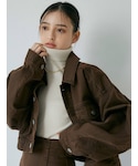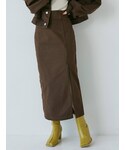 こちらのデニムのセットアップはジャケットは丈短めでスカートにはスリットが入っているタイトスカートなのできれいめにきれます! わたしは柄のニットと合わせて【秋先取りコーデ】できれいめにまとめてみました!!