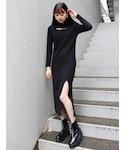 このスリットワンピースは低身長でも 脚長効果と胸元も空いてるのでシンプルすぎず可愛い🖤 短めのアウターと合わせて腰の位置を上げましたっ!!