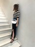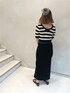 【大人カワイイコーデ】 【TOPS】後ろが開いているデザインなのと5分丈なので華奢に見えます👌🏻 【BTMS】このスリットスカートは黒でもウエストが青なので取り入れやすい色物コーデにもなります!