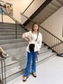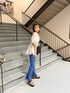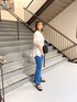 【楽ちんキレイめコーデ】 【TOPS】後ろが長めなのでお尻まで隠してくれるのでぴたっとしたパンツでも安心です🖤 【BTMS】着心地もいいフレアパンツは足のラインがきれいに見えるので脚長効果抜群です🫶🏿