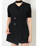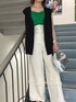 【大人キレイめコーデ】 【TOPS】ジレを合わせるだけで一気に大人ぽく!後ろで絞れるのでAラインのシルエットがきれいになります! 【BTMS】ワイドパンツですがウエストで細くなってるのでより足が長く見えます🖤
