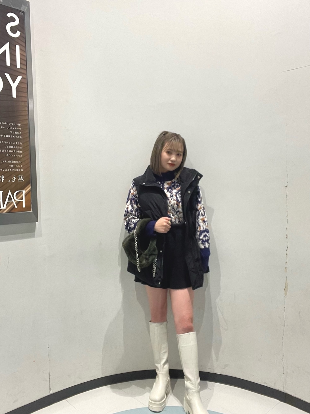 飯嶋菜奈(MURUA)のハンドバッグ「フェイクファーミニバッグ」を使ったコーディネート