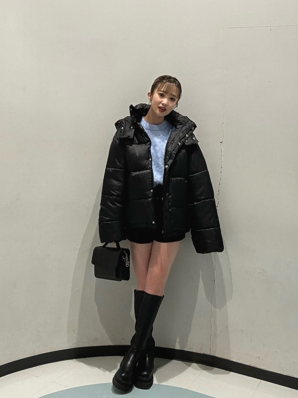 飯嶋菜奈(MURUA)のハンドバッグ「フェイクレザーミニショルダー」を使ったコーディネート