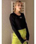【春先取りモードコーデ】 【TOPS】短い丈でロゴのところが透けてるのがポイント!ピタッとしてるけど伸びるのですごく動きやすいです! 【SKIRT】カーゴスカートは中にパンツがついておりスカートですが一気にカジュアルになるので上がトレーナーパーカーでも可愛いです!