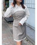 【春のガーリーコーデ】 【ONEPIECE】シャツがくっついていてこれ一枚でオシャレ見え間違いなし!ウエストが絞れるので脚長効果抜群なワンピースになっております!