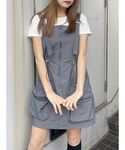 【カジュアルデートコーデ】 【TOPS】前後ろどちらでも使えるトップスでぴたっとしすぎてないのでラインを気にせずに着て頂けます! 【ONEPIECE】こちらのカーゴワンピースはウエストが絞れるのでウエストマークして頂けます!153cmの身長でこのくらいの丈感になっております!