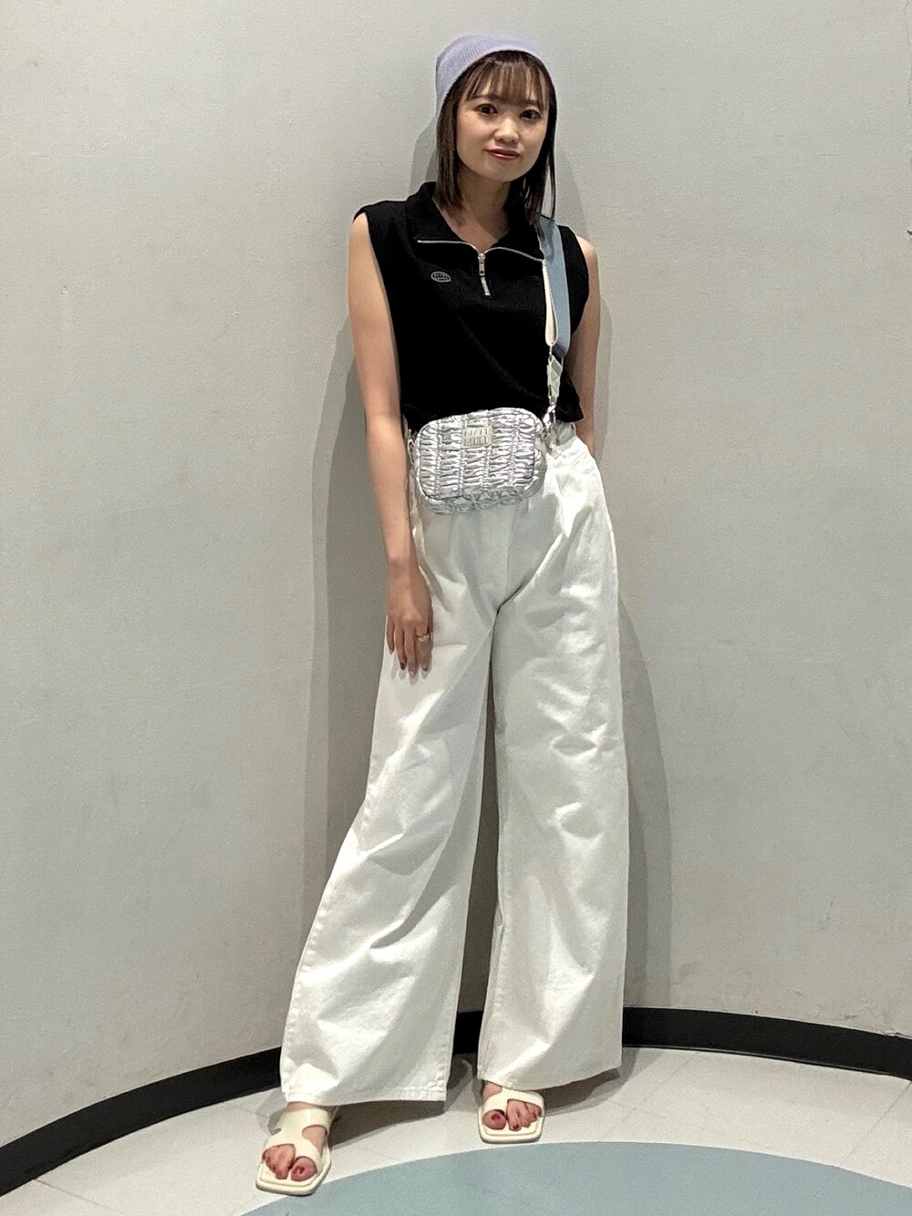【楽ちんカジュアルコーデ】 【TOPS】流行りのジップ付きのトップスは1枚でカジュアルに!短めの丈感なのでハイウエストボトムスでインせずに着れます! 【PANTS】ウエストがホックで調節していただけるので細みえ間違いなし!153cmの身長でこのくらいの丈感になっております!