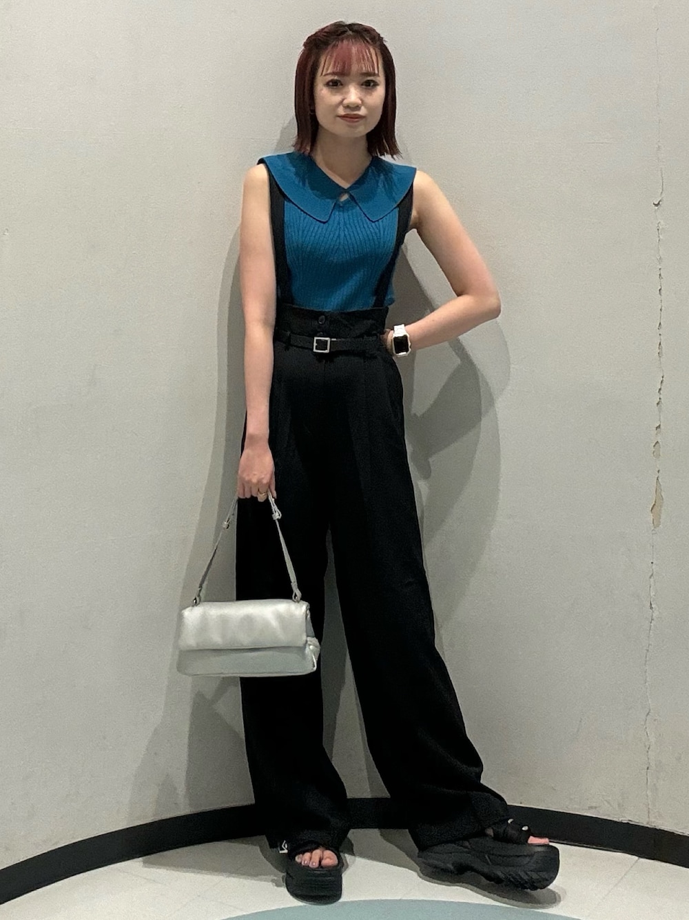 飯嶋菜奈(MURUA)のその他パンツ「【SET UP対応】フェイクレザーベルトサスペンダーパンツ」を使ったコーディネート