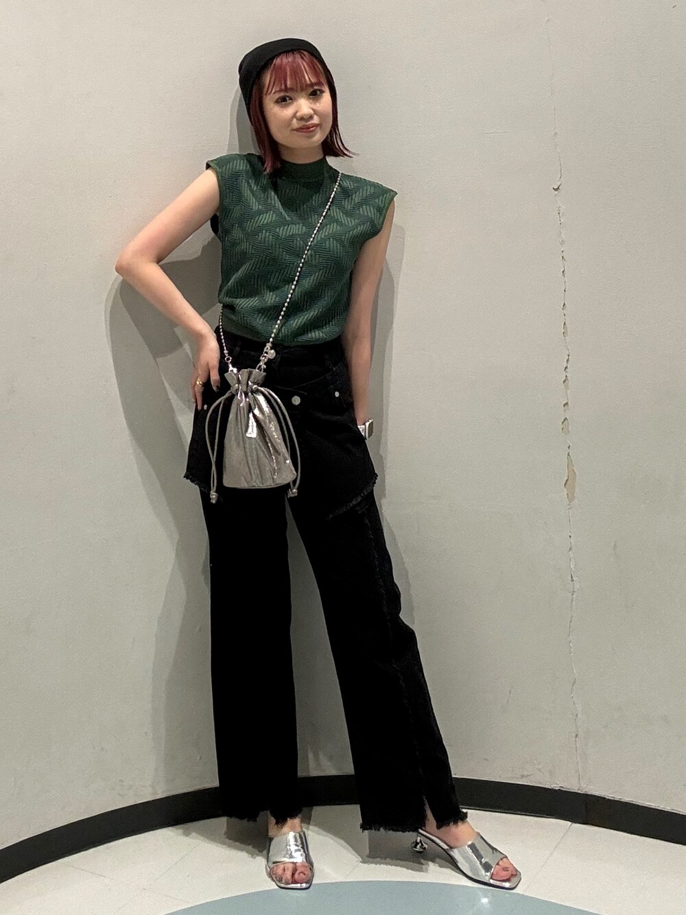 【夏のカジュアルコーデ】 【TOPS】こちらのトップスは少し袖が落ちてるデザインなので二の腕がガッツリ出ないので華奢に見せてくれます!柄ニットの翠は存在感抜群です! 【PANTS】スカートパンツになっているパンツは太ももをカバーしてくれて少しフレアになったデニムになっております! 【SANDAL】ヒールの部分が特徴的なパンプスはヒールも低めなので歩きやすくきれいめカジュアルどちらでも使えます! 【BAG】持ち手が2つあるので手持ちとして使っていただいても可愛いです! 小さめバックはコーデのアクセントになります!