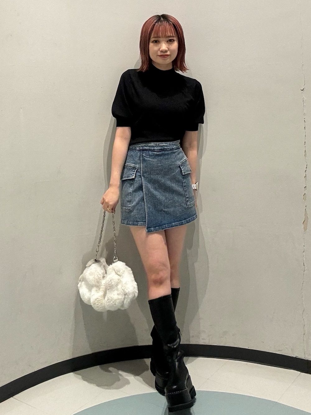 【大人モードコーデ】 【TOPS】こちらのトップスはパフスリーブになっていて二の腕をカバーしてくれます!5分丈なので秋口は羽織のインナーとしても使えます! 【SKIRT】ウエストがゴムになっていて生地感も柔らかいのでオールシーズン使って頂けるスカートになってます! 【BOOTS】厚底のロングブーツはとにかく足が盛れます!丈感が少し短いですがそれが脚長効果を出してくれるのでミニ丈のボトムは相性抜群です!
