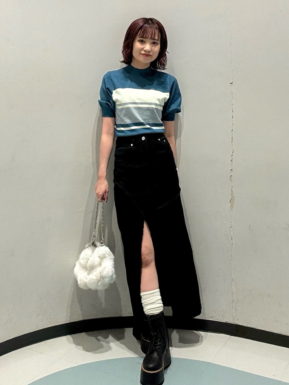 【先取りコーデ】 【TOPS】5分丈のトップスは秋の季節に大活躍間違いなし!BLUEはデザインもあり シンプルなボトムでも○パンツスタイルでカジュアルでも可愛いです! 【SKIRT】スリットが深く入っていてAラインでシルエットをきれいに見せてくれます!デニムのスカートはオールシーズン使って頂けます! 【SHOES】厚底のブーツは高低差がない為歩きやすく低身長さんには足が盛れる高さになっています!靴下合わせにミニスカートでも可愛いです!