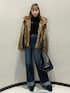 飯嶋菜奈(MURUA)のその他アウター「フェイクファーラインジャガードコート」を使ったコーディネート
