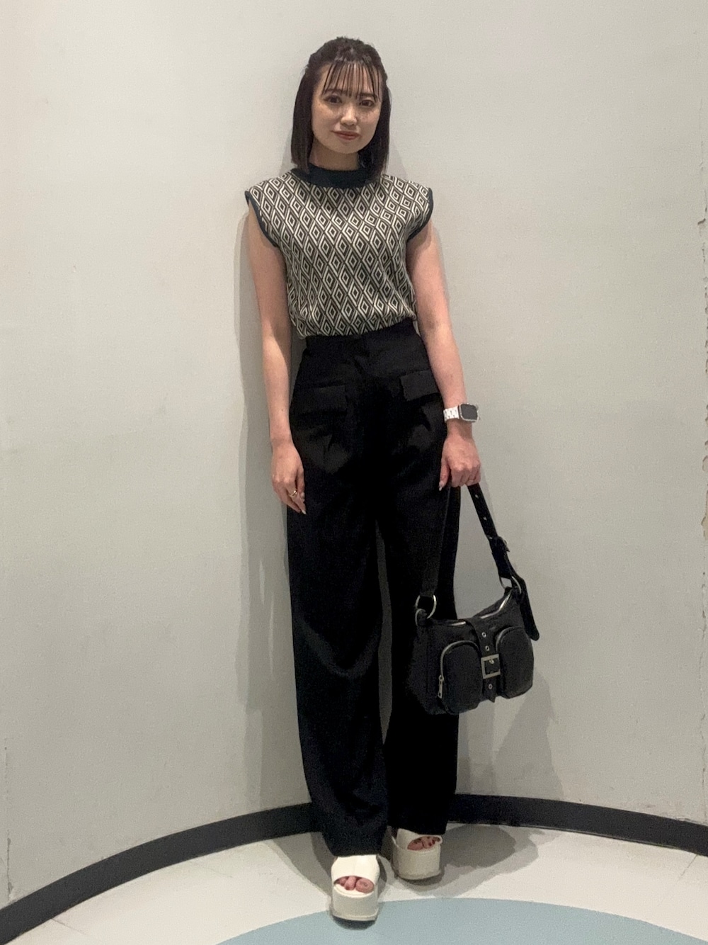 【TOPS】こちらのトップスはフレンチスリーブなので二の腕がガッツリ見えず安心!秋も使えるカラバリなのでインナーとしても使えます! 【PANTS】こちらのパンツは中の裏地が膝上までしかないので夏はサラッと履けて暑くないです!オールシーズン使えるので着回し抜群です! 【BAG】合わせやすさ抜群のBAG!!ポケットたくさんで中身の容量もペットボトル入るくらいになります! 【SHOES】ストラップがついているので足が動かず長時間履いていても気にならないです! 24cmの足のサイズで23.5をピッタリで履いています!