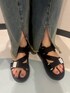 【TOPS】肩にデザインがあり女性らしいトップス!丈感長めなのでインせずに着れます!ロングスカート合わせで大人ぽさも出して頂けます! 【PANTS】こちらのフレアデニムは柔らかい素材感でハイウエストなので脚長効果抜群です! 153cmでSサイズを着用しています! 【SHOES】かかと部分が取り外ししていただける2wayタイプ!24cmの足のサイズで23cmのシューズをピッタリで履いています!