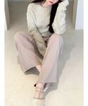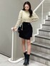 ニット→ きらきらとしたラメ糸を使用した存在感のあるシャギーニット❤︎ 同色のマットな糸を引き揃えて編むことで、華やかさはありながらも派手過ぎない程良いラメ感に。 丈感はコンパクトにまとめバランスを取れた仕上がりになっています♪ ボトムス→ 前はスカート、後ろはパンツの異なるデザインながらも丈を気にせず着用できます! フロントのラップデザインが太ももラインをスリムに魅せ、脚長効果抜群です☺︎ バッグ→この冬にピッタリなベルベットバッグ。チェーンショルダーと合成皮革のハンドルを付けれるので気分に合わせて変えていただけます。ゴールドの金具で高級感もありシンプルで使いやすいバッグになっています! ブーツ→太めのデザインヒールで安定感もあり歩きやすいアイテム。 ニット切り替え仕様で着脱もしやすく足首のホールドも高めです☆