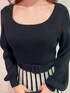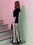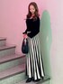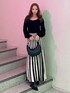 ワンピース→バイカラーのプリーツデザインが華やかなニットワンピース! 動くたびにひらっと広がり、配色ラインが縦のラインを強調してくれ、脚長効果も❤︎ デコルテは広めに空いていてスッキリ見えます! バック→トレンドの三日月型のハンドバックで、付属品も少なく高級感あるシンプルな作りになっています! ブーツ→太めのデザインヒールで安定感もあり歩きやすいアイテム。ニット切り替え仕様で着脱もしやすく足首のホールドも高めです☆
