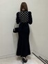 ワンピース→リゼクシーのオリジナル柄が入ったワンピース❤︎バスト下で切り替えられていて脚長効果も抜群です! 袖はギャザーになっており程よいふんわり感が女性らしいデザインに。 ニットのマーメイドシルエットなのでボディラインに沿って綺麗に形が出てくれます! バッグ→この冬にピッタリなベルベットバッグ。チェーンショルダーと合成皮革のハンドルを付けれるので気分に合わせて変えていただけます。ゴールドの金具で高級感もありシンプルで使いやすいバッグになっています。 シューズ→クロスデザインでスタイリッシュに仕上がったパンプス。着こなしを選ばないベーシックなデザインなので、オンオフ問わず幅広いシーンで活躍します♪