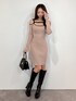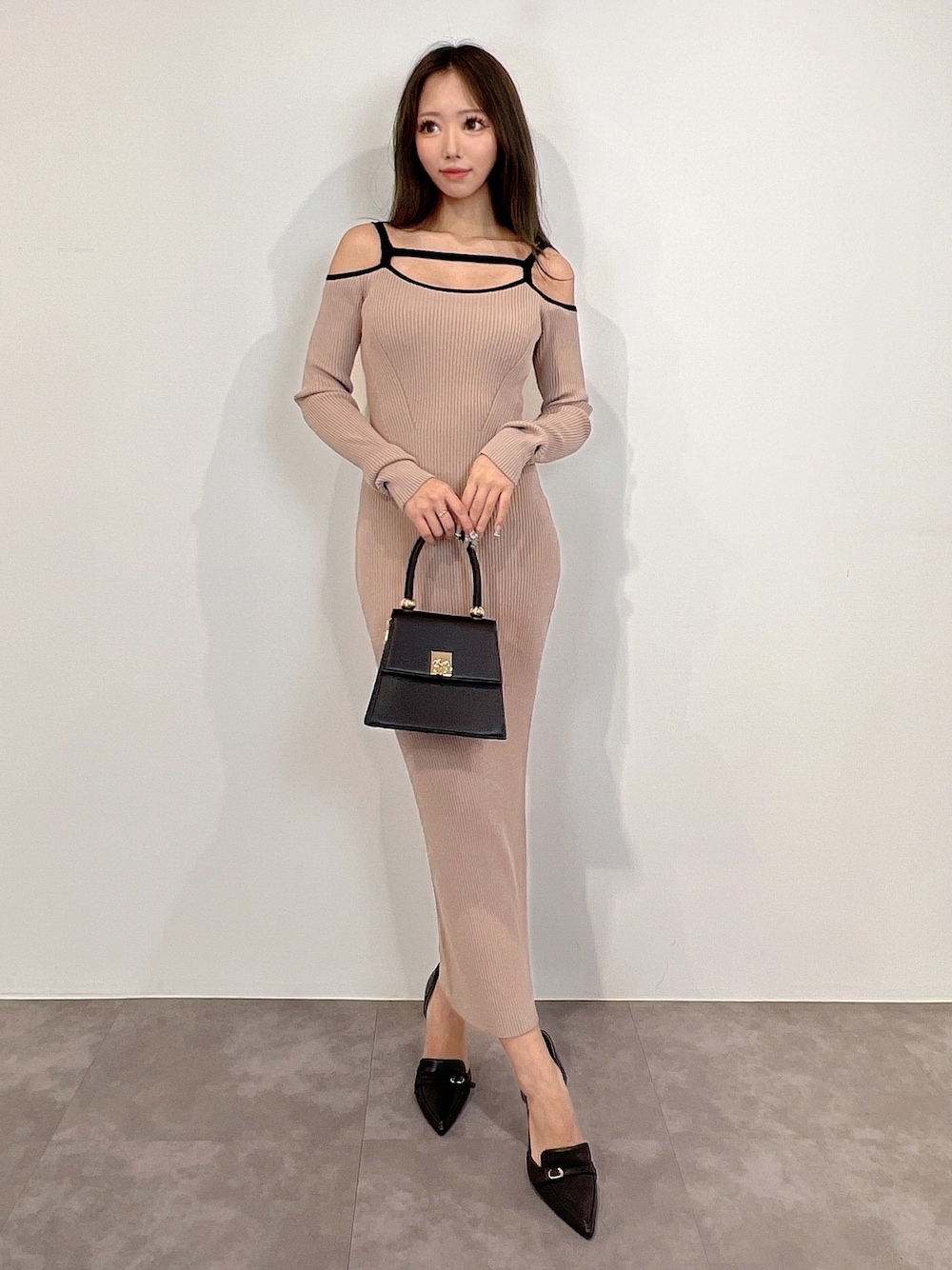 ワンピース→S、M展開で長さが変わるデザインです。リブ素材のニットなのでボディラインをしっかり出してくれます。 程よい肌見せが女性らしい印象に❤︎ バッグ→高級感のあるゴールド金具を使っていて、シンプルですが使いやすいアイテムです。底が広めなので物もよく入ります☺︎ パンプス→ ポインテッドトゥで足元をすっきり綺麗に見せてくれます。サイドオープンなので抜け感も◯ ブーツ→ソールがしっかりしていて厚底になっているのでとっても歩きやすく脚も綺麗に見せてくれます!