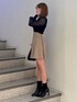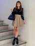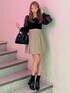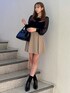 トップス→袖の透け感と程良いパワショルで女性らしい印象に❤︎ ボディはリブの素材なので細見え効果抜群です! スカート→ハイウエストのミニスカートでスタイルアップしつつ、155センチの私が着て短すぎず、長すぎずなので安心して履けました。 バックウエストはゴムになっているのも嬉しいポイントです! バック→底が広く沢山物を入れる事が出来ます。シンプルで高級感のあるデザインなのでどんなコーデにも合わせられます! 付属のベルトをつけてショルダーバックとしても使っていただけます! ブーツ→太めのデザインヒールで安定感もあり歩きやすいアイテム。ニット切り替え仕様で着脱もしやすく足首のホールドも高めです☆