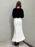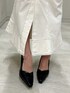 トップス→立体的な刺繍で書かれたロゴがポイントのスウェットトップス。 クロップド丈でウエスト部分は絞られているのでスタイルアップ効果も抜群です。 スカート→カジュアルなデニムをマーメイドシルエットで女性らしく仕上げたスカート。フロントに大きめのスリットが入っており程よい肌見せで抜け感もバッチリ。 ウエストの細ベルトが華奢に見せてくれます❤︎ パンプス→ クロスデザインでスタイリッシュに仕上がったパンプス。着こなしを選ばないベーシックなデザインなので、オンオフ問わず幅広いシーンで活躍します♪