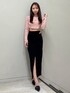 トップス→今トレンドのジップトップスがリゼクシーに登場❤︎ショート丈で脚長効果も抜群!チラッと肌見せが可愛いデザインです!また、ウエストの開き方も細く見えるような形になっています♪ リブ素材で腕周りも綺麗に見えます! スカート→大きく膝までスリットが入ったシンプルなタイトスカート。 ウエストの開いている部分が他にないデザインです! 肌触りの良い生地でヒップラインも綺麗に出してくれます。 パンプス→ ポインテッドトゥで足元をすっきり綺麗に見せてくれます。サイドオープンなので抜け感も◯クッション性もあり長時間歩いても疲れにくいです!
