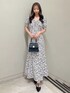 ワンピース→ バックオープンデザインですがインナーが見えないようになっています。 腕周りもギャザーになっているので細見えしますしなによりもボディラインにそってマーメイドラインが綺麗に出てくれます❤︎ バッグ→コンパクトなサイズ感とシンプルなデザインでどんなコーデにも合わせやすいアイテム。 ゴールドの装飾xツヤを抑えたバッグで高級感もあり華やかに! パンプス→ホールド性があるTストラップで歩きやすいミュール。 どんなコーデにも合わせやすいアイテムです!
