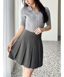 トップス→ロゴ刺繍が描かれたトップス。 暖かい季節でも着やすいサマーニットで伸縮性もあり楽に着ていただけます♡ スカート→プリーツデザインのミニスカートはシンプルでどんなトップスにも合わせやすい♪インナーパンツ付きなので安心です☺︎ バッグ→コンパクトなサイズ感とシンプルなデザインでどんなコーデにも合わせやすいアイテム。 ゴールドの装飾xツヤを抑えたバッグで高級感もあり華やかに! サンダル→ストラップ付きの厚底サンダルなので安定感もあり、傾斜も少なく歩きやすい一足です!
