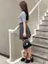 トップス→ロゴ刺繍が描かれたトップス。 暖かい季節でも着やすいサマーニットで伸縮性もあり楽に着ていただけます♡ スカート→プリーツデザインのミニスカートはシンプルでどんなトップスにも合わせやすい♪インナーパンツ付きなので安心です☺︎ バッグ→コンパクトなサイズ感とシンプルなデザインでどんなコーデにも合わせやすいアイテム。 ゴールドの装飾xツヤを抑えたバッグで高級感もあり華やかに! サンダル→ストラップ付きの厚底サンダルなので安定感もあり、傾斜も少なく歩きやすい一足です!