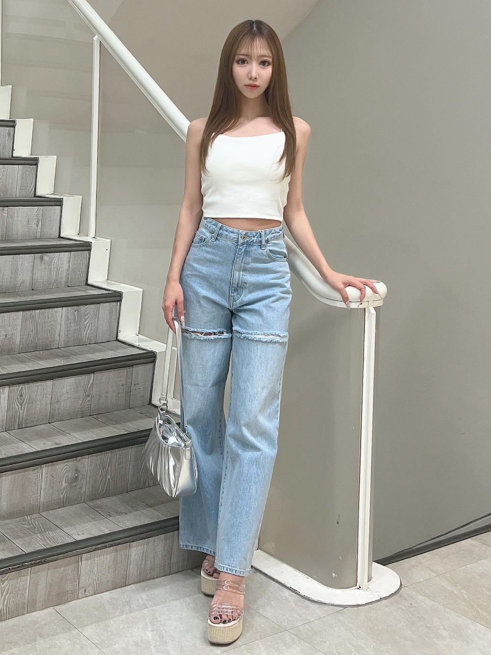 キャミソール→パッド付きなのでインナー代わりにも一枚でも着ていただけます♪ クロップド丈でスタイルもよく見えます。 パンツ→S、Mのツーサイズ展開で身長に合わせてお使いいただけます! ダメージ加工が程よい抜け感となりシンプルですが使いやすいデザインです。 155センチの私はSサイズでぴったりでした☺︎ バッグ→ 口が大きく開くので物を取り出しやすく大容量入るバッグ。 シンプルで使いやすく、コーデのワンポイントに! サンダル→ 毎年大人気の厚底サンダル! 脚が本当に盛れます!!!! 柔らかいストラップなので靴擦れもしづらく安心です。 傾斜も少なく歩きやすいアイテムです!