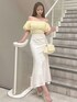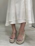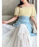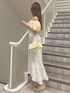 ブラウス→肩部分はゴムになっておりオフショルにしやすいデザインです♪ スクエアネックとしても使って頂けます! バストのギャザーと袖のふんわり感が女性らしい印象に♡ スカート→アシンメトリーデザインで脚長効果も抜群なマーメイドスカート。 存在感のあるフリルが女性らしく緩やかなマーメイドラインがどんなコーデにも合わせやすくなっています! バッグ→ 口が大きく開くので物を取り出しゃすく大 容量入るバッグ。 シンプルで使いやすく、ゴールドチェーンで高級感もあります♪ サンダル→ 毎年大人気の厚底サンダル! 脚が本当に盛れます!!!! 柔らかいストラップなので靴擦れもしづらく安心です。 傾斜も少なく歩きやすいアイテムです!