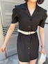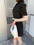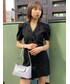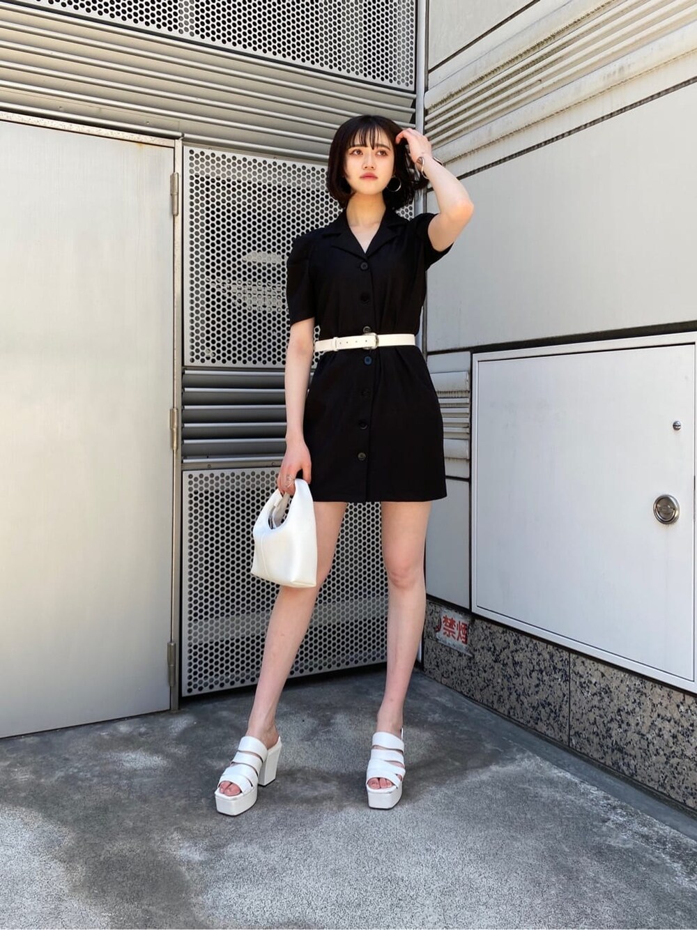 こちらのワンピースは着るとウエスト部分が少し内側に向かって縫われてるの自然と細く見えます! 肩のところのギャザーは女の子らしさが出てとっても可愛いです! ワンピースが黒で重ためなので小物は全部真っ白にしてモノトーンにまとめてみました!