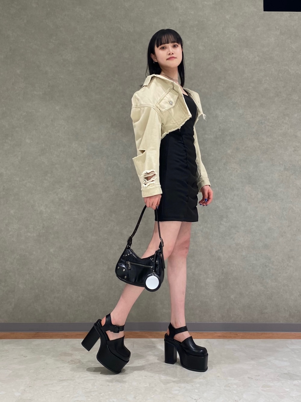 【アウター】ショート丈のジージャンで裾が切りっぱなしのデザインで軽く動きやすいコーデに必須のアイテムです! 【ワンピース】ギャザーが全体に入っていて、袖がパフスリーブになっていてフェミニンワンピースです! 【サンダル】ブーツサンダルなので季節問わずオールシーズン使えます!