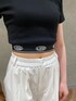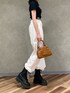 【トップス】フィット感のあるT-シャツでウエストのロゴテープがピタッとしてくれるのでスッキリと細見えします! 【ボトムス】こちらのナイロンパンツはポッケデザインがないタイプなため、シンプルで使いやすいパンツです。ウエストゴムなので楽ちんに履いて頂けます! 【ブーツ】Lサイズ着用。