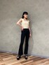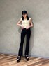 山崎愛実(EMODA)のデニムパンツ「サイドオープンハイウエストフレアパギンス」を使ったコーディネート