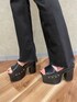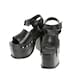 【デニム】EMODAのデニムはホントに伸びます!こちらはウエスト部分が開いてるフレアデニムでこれを厚底と合わせると8割脚になります! 【サンダル】Lサイズ着用。
