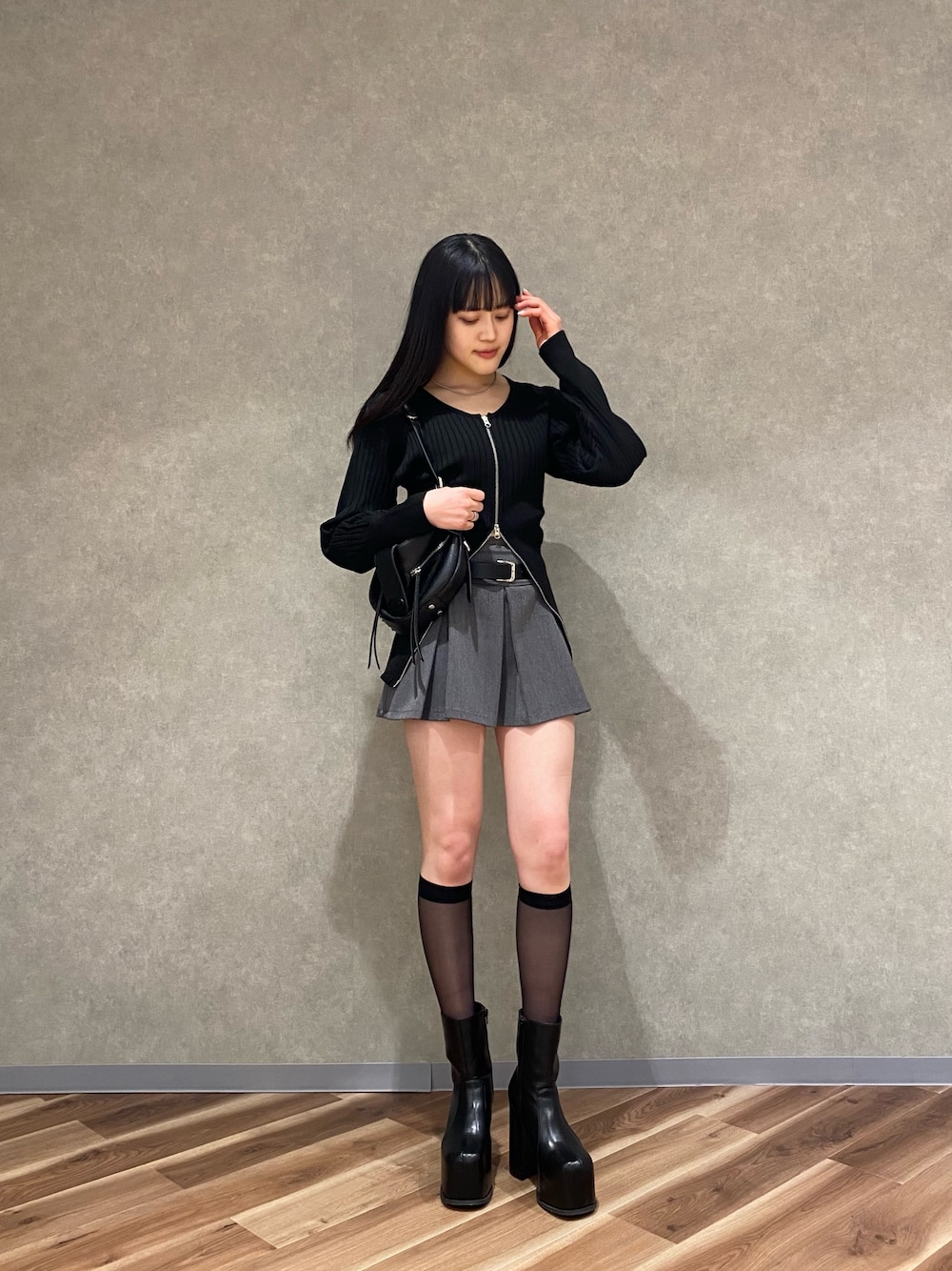 【トップス】逆開ファスナーなので抜け感を出せます! 【ボトムス】ハイウエストにもなるしローのデザインなので1枚着るだけで今っぽい雰囲気になります! 【ブーツ】Lサイズ着用。