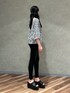 【トップス】袖にギャザーがあり絞られているデザインでデコルテも開いているので綺麗目な女性らしさのあるカットソーになります! 【デニム】最新のELDERシリーズのモンスターですがシリーズで1番と言っていい程伸びます!伸縮率に感動します。かっちりきめたい日にも普段のコーデにも着て頂けます! 【サンダル】Lサイズ着用。