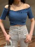 【トップス】ピタっとしたショート丈トップス!オフショルダーで夏らしくクロスデザインがポイントのトップス! 【ボトムス】ウエスト部分がカットされてるハイウエストフレアデニム! 伸縮性もあり履き心地も万点! 【サンダル】Lサイズ着用。