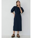【one-piece】ステッチがかわいいカジュアルなワンピース。素材がカジュアルな分パフスリーブとペンシルの形で女性らしさも◎足首がスッキリ見える絶妙な丈なので、ミニが苦手な方や低身長の方も着やすいです!ウエストは後ろがゴムなので着心地もストレスフリーです。 【shoes】ボリュームソールがムルーアらしいレザーサンダル。ソックス合わせも可愛いので春先からロングシーズン使い倒せます!