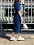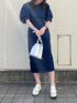 【one-piece】ステッチがかわいいカジュアルなワンピース。素材がカジュアルな分パフスリーブとペンシルの形で女性らしさも◎足首がスッキリ見える絶妙な丈なので、ミニが苦手な方や低身長の方も着やすいです!ウエストは後ろがゴムなので着心地もストレスフリーです。 【shoes】ボリュームソールがムルーアらしいレザーサンダル。ソックス合わせも可愛いので春先からロングシーズン使い倒せます!