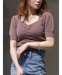 大人フェミニンコーデ好きな方にオススメコーデ( ¨̮ ) ハート型の襟ぐりで甘く見えますがセンターギャザーが女性らしさup◎ スカートがアイボリーなので甘くなりすぎないようにトーン暗めなトップスがオススメ!私はブラウン合わせてます! スカートはdazzlinらしさ全開のスカート!アシンメトリーと異素材の組み合わせがとにかく可愛いです(*´`)