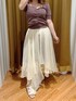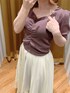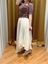 大人フェミニンコーデ好きな方にオススメコーデ( ¨̮ ) ハート型の襟ぐりで甘く見えますがセンターギャザーが女性らしさup◎ スカートがアイボリーなので甘くなりすぎないようにトーン暗めなトップスがオススメ!私はブラウン合わせてます! スカートはdazzlinらしさ全開のスカート!アシンメトリーと異素材の組み合わせがとにかく可愛いです(*´`)